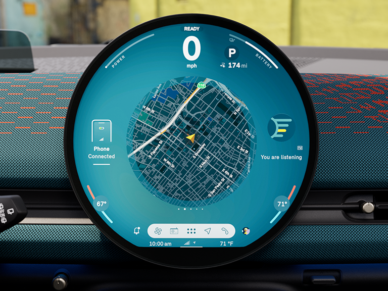 The standard MINI Intelligent Personal Assistant allows you to use your voice to operate functions like navigation, telephone, radio, temperature, journey info, and more. The system can be activated using the greeting "Hey MINI" or by pressing the push-to-talk button on the steering wheel. Best of all, you can choose between two avatars for your personal assistant: A stylized version of your MINI, or "Spike", MINI’s mascot, which is available at an additional cost.
